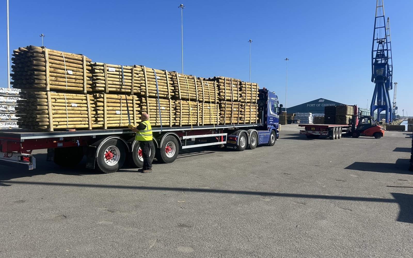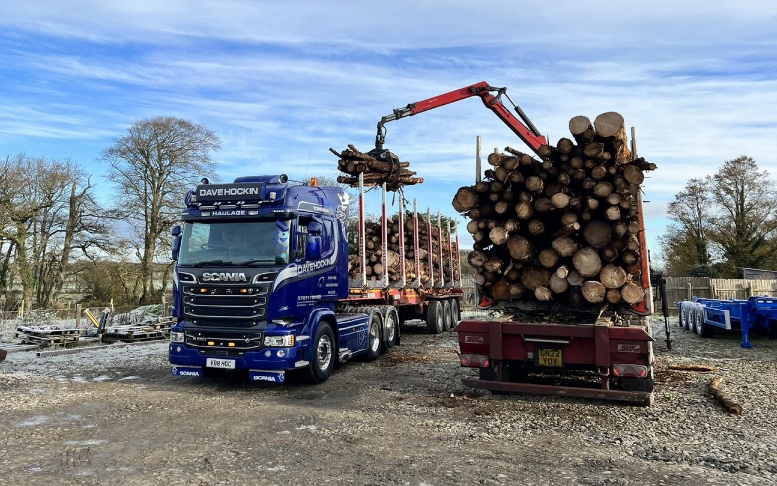 - Crane and flatbed timber haulage